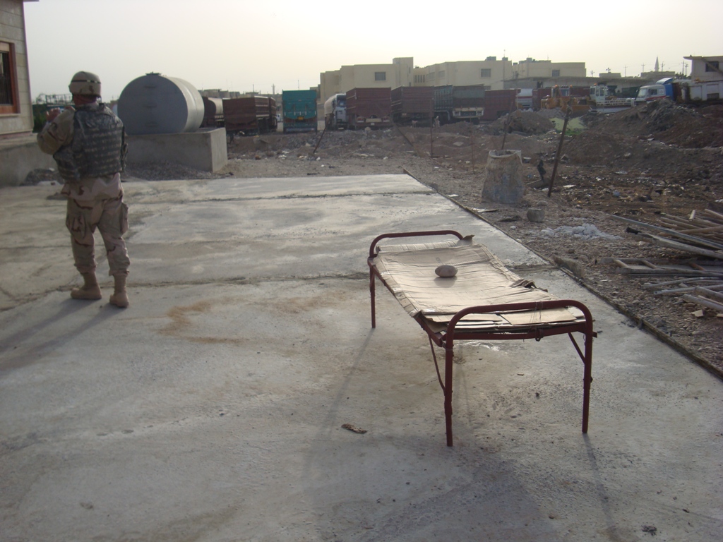 This clinic is in the Hai Nablis neighborhood, which has been a very unstable area for the last few months. Just recently the clinic was damaged by a VBIED. The explosion blew out numerous windows and damaged the ceiling tiles. Fortunately, there was no structural damage. Yesterday, everything seemed pretty quiet. I guess you can expect that when you visit at 0600! The construction contractor has a security guard stay on site to make sure no one breaks into the clinic at night. He was happy to show us around, even though we woke him up!